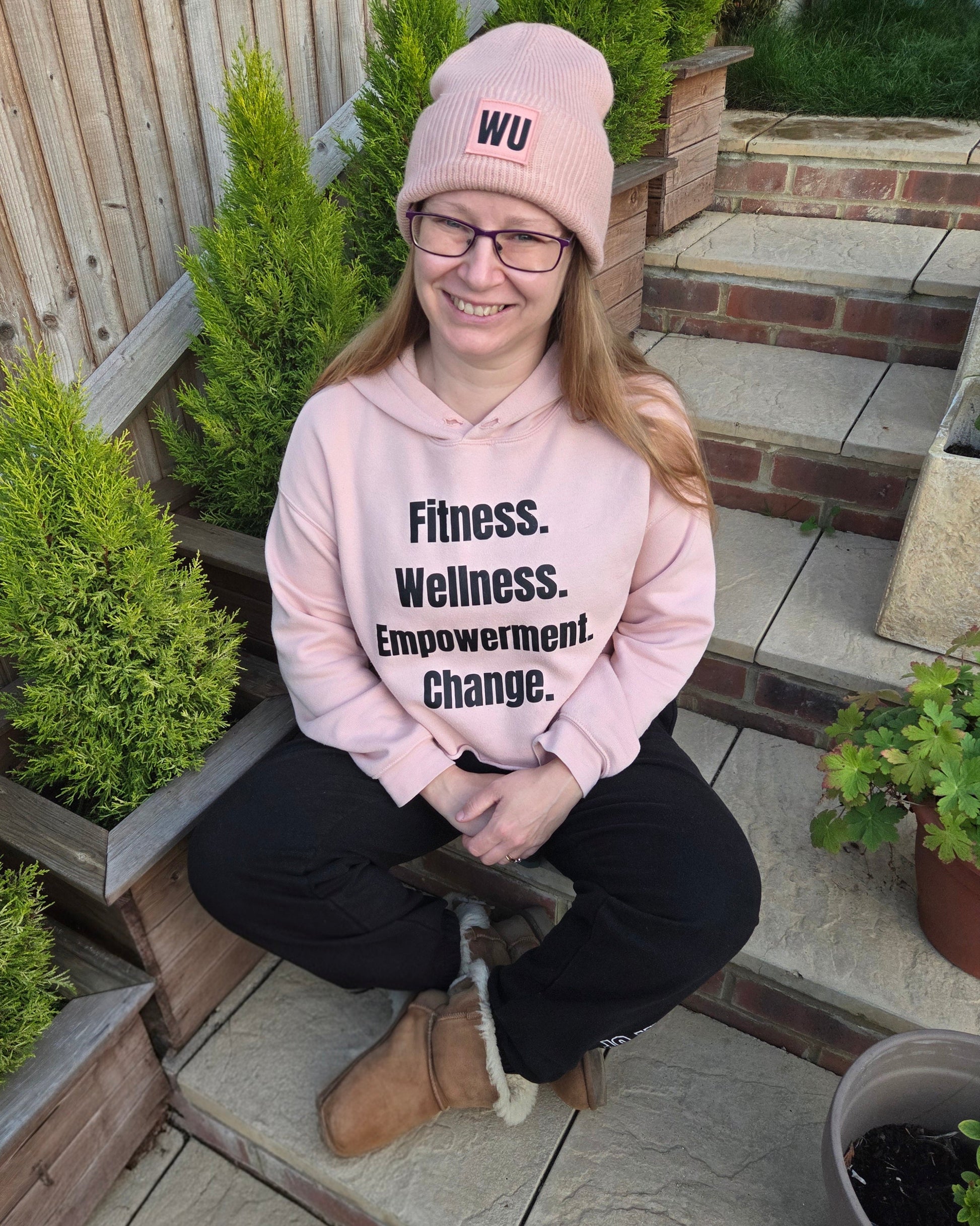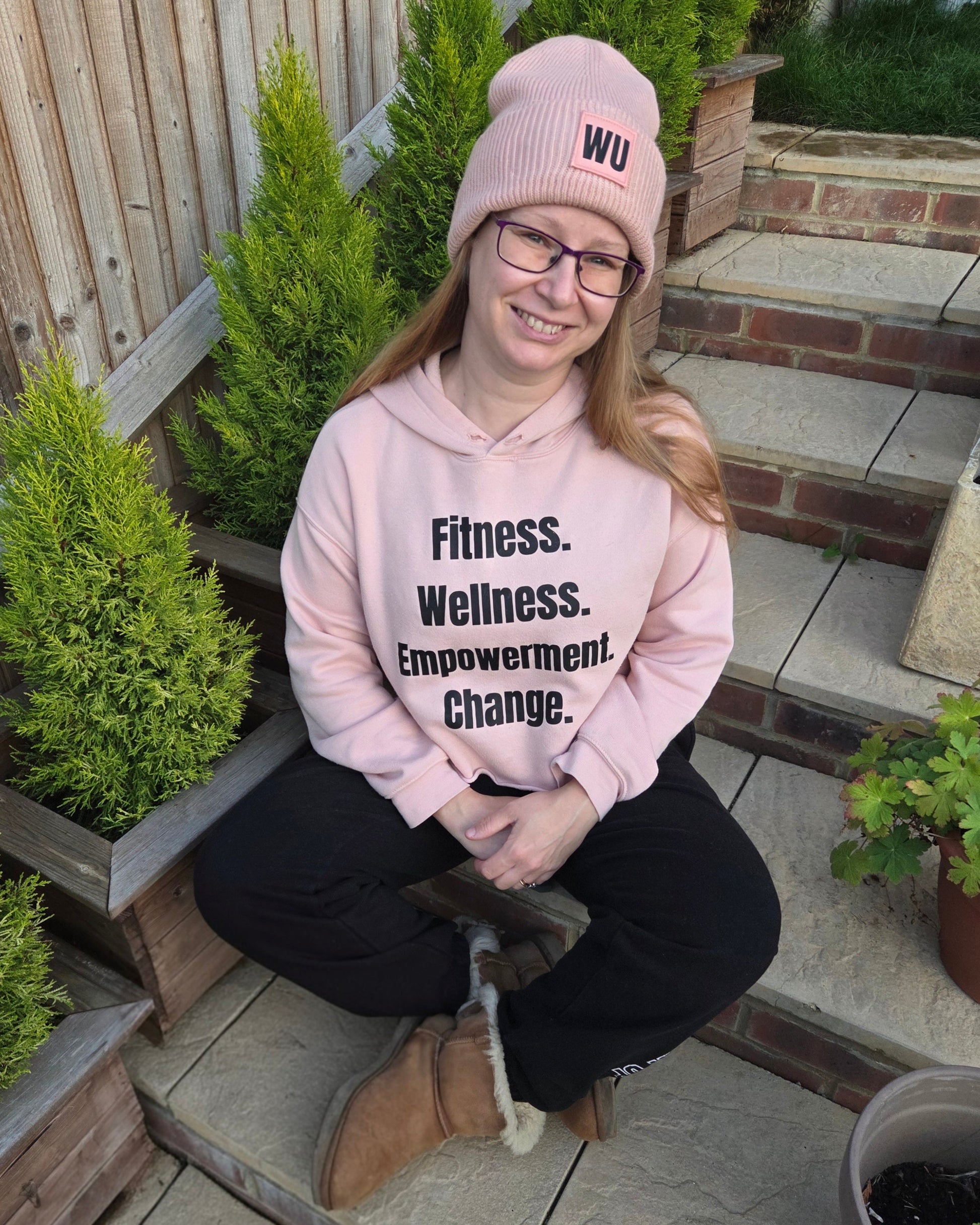 The peach one is a perfect match four our Fitness, Welness, Empowerment, Change peach cropped hoodie. If you purchase the peach cropped hoodie now, the beanie is only cost £9.50
