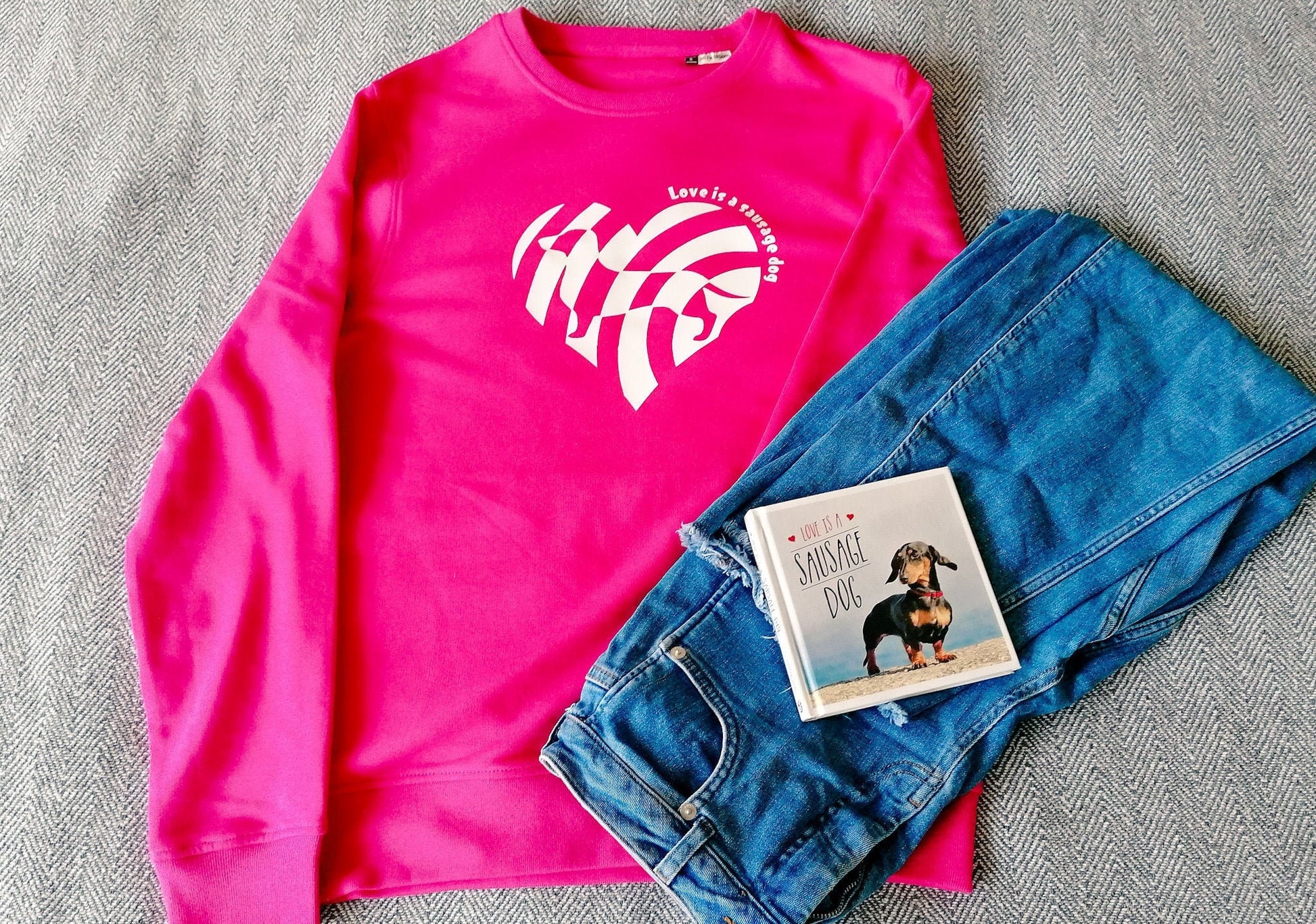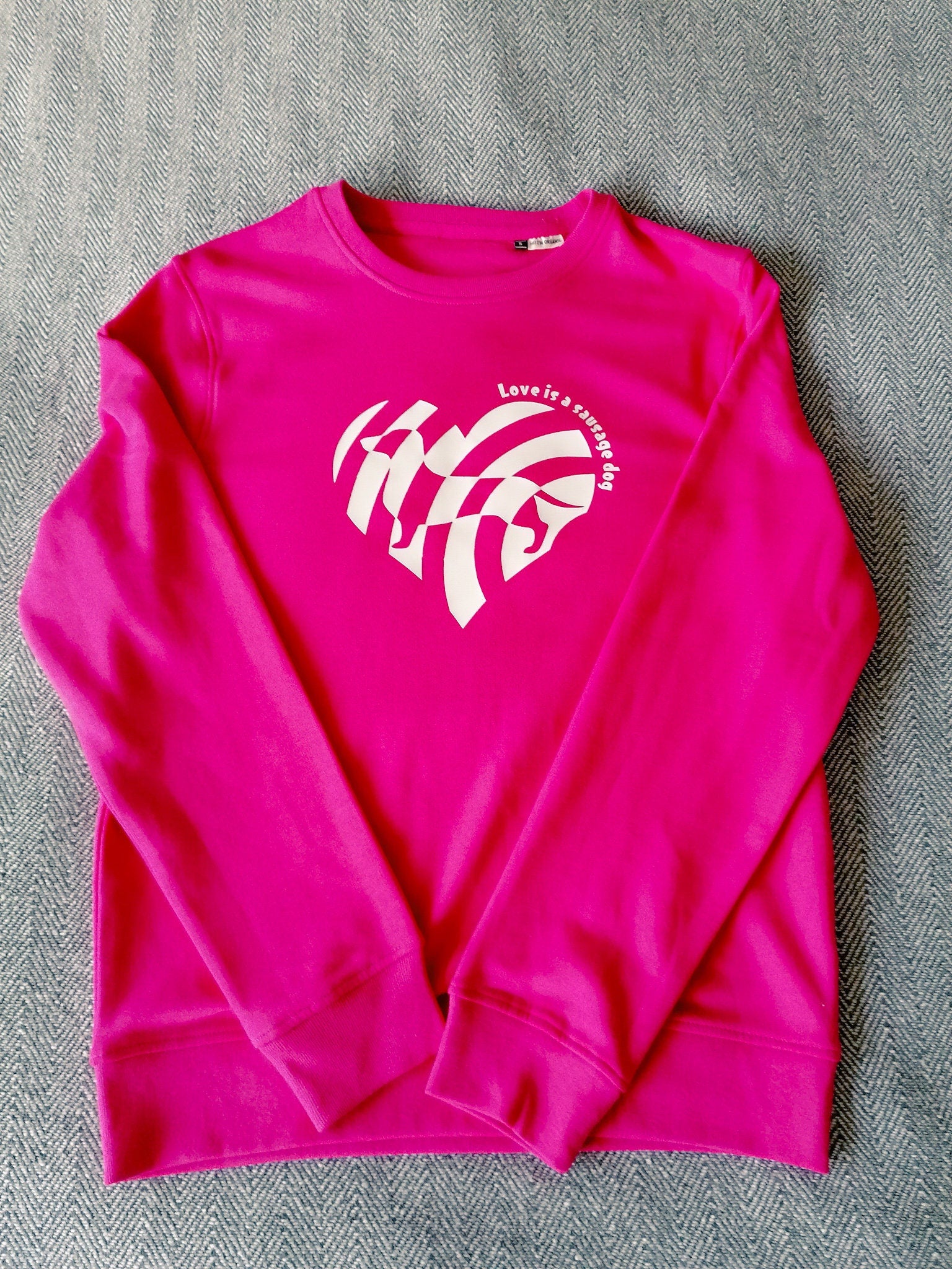 Vibrant and unique dachshund design on a 100% organic cotton sweatshirt. For sausage dog owners and sausage dog lovers.